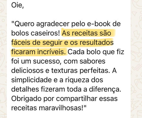 No meu e-book Caseirinhos Irresistíveis, eu compartilho 15 receitas deliciosas e fáceis de fazer, perfeitas para quem, assim como eu, deseja transformar a paixão por bolos caseiros em uma renda extra ou até em um negócio lucrativo. Com uma linguagem leve e acolhedora, vou te guiar desde o preparo até dicas valiosas para garantir uma produção eficiente, mesmo na sua casa, enquanto você ganha mais tempo com a família. Venha descobrir como bolos simples podem conquistar corações e clientes, e dê os primeiros passos na sua jornada na confeitaria comigo!
