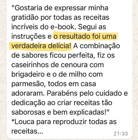 No meu e-book Caseirinhos Irresistíveis, eu compartilho 15 receitas deliciosas e fáceis de fazer, perfeitas para quem, assim como eu, deseja transformar a paixão por bolos caseiros em uma renda extra ou até em um negócio lucrativo. Com uma linguagem leve e acolhedora, vou te guiar desde o preparo até dicas valiosas para garantir uma produção eficiente, mesmo na sua casa, enquanto você ganha mais tempo com a família. Venha descobrir como bolos simples podem conquistar corações e clientes, e dê os primeiros passos na sua jornada na confeitaria comigo!
